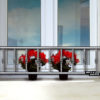 Ossature en carré plein de 20 x 20 mm, main courante en acier mouluré, motif prestige, largeur tableau mini 70 cm.