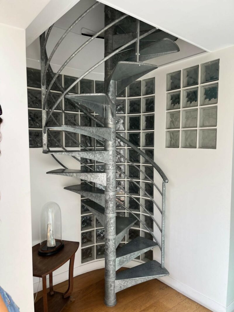 Escalier d’extérieur hélicoïdal OSLO galvanisé. Disponible en 2 diamètres ø 122 cm ou ø 152 cm. Hauteur adaptable.