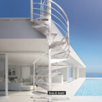 Escalier d’extérieur hélicoïdal OSLO galvanisé. Disponible en 2 diamètres ø 122 cm ou ø 152 cm. Hauteur adaptable.