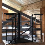 Escalier hélicoïdal Oslo en acier ø122cm ou ø152cm à hauteur adaptable. Marches acier ou habillées hêtre lamellé-collé en option. Garde-corps inclus composé de poteaux, main courante et lisses acier. Marche palière triangulaire. Modèle déposé.