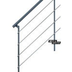 Garde-corps acier composé de poteaux tubulaires rectangulaires 40 x 20 mm, main courante largeur 50 mm ou bois exotique en option et 5 lisses horizontales en aluminium anodisé (rampe 4 lisses).