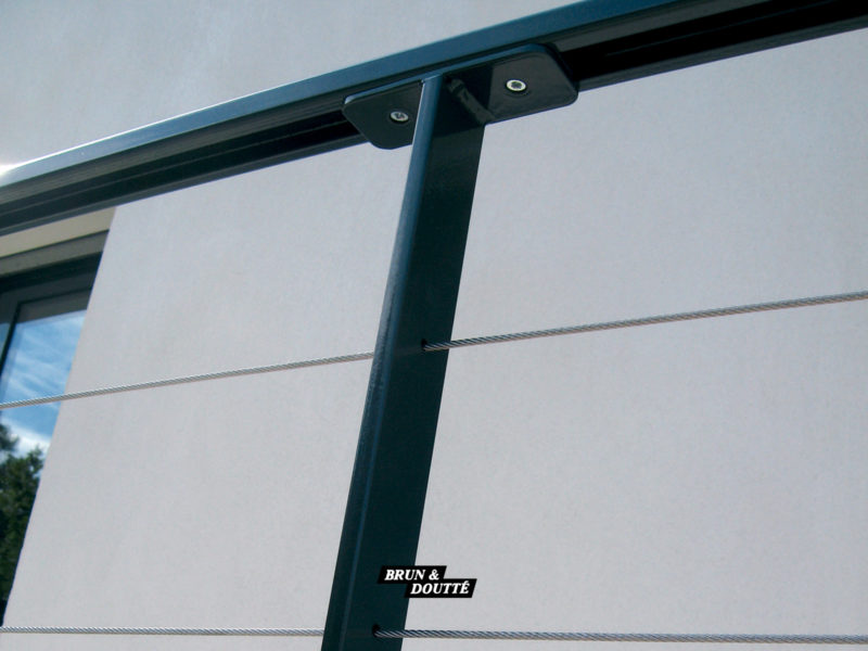 Pose sur platines sur dalle ou à l’anglaise. Installation simple et rapide grâce aux systèmes de réglage. Serrage manuel des câbles inox sans pince à sertir. Hauteur de balcon règlementaire 1 m. Rampe 4 lisses uniquement en rond plein ø 12 mm.Garde-corps extérieur acier