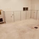Garde corps et rampe acier composé d’éléments en fer plein hauteur 101 cm x largeur 22.5 cm, vide entre fer