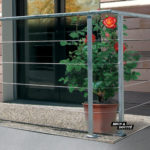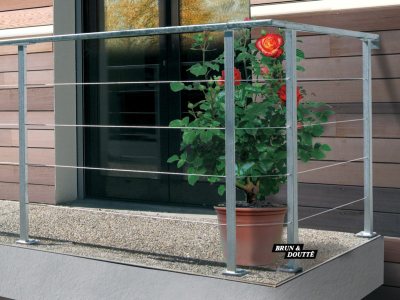 Pose sur platines sur dalle ou à l’anglaise. Installation simple et rapide grâce aux systèmes de réglage. Serrage manuel des câbles inox sans pince à sertir. Hauteur de balcon règlementaire 1 m. Rampe 4 lisses uniquement en rond plein ø 12 mm.Garde-corps extérieur acier