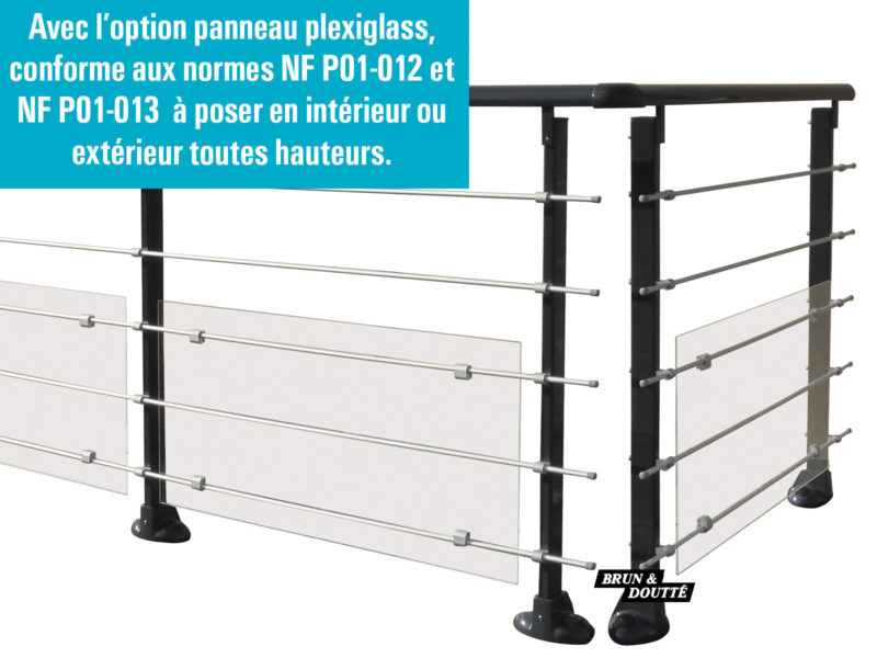 - Panneau plexi transparent uniquement pour garde-corps droit hauteur 45 cm conforme aux normes NF P01-012 et NF P01-013 toutes hauteurs.