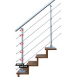 Garde-corps aluminium composé de poteaux, main courante tubulaire ø 55 mm et 5 lisses horizontales en aluminium anodisé ø 10 mm.