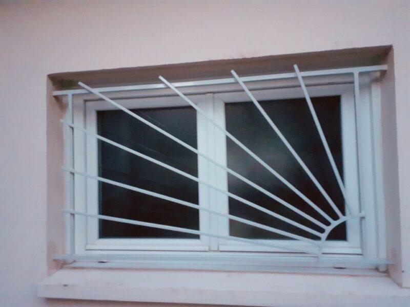 Traverses tubulaires de 16 x 16 mm et montants en carré plein de 12 x 12 mm, barreaudage en carré plein de 10 x 10 mm
