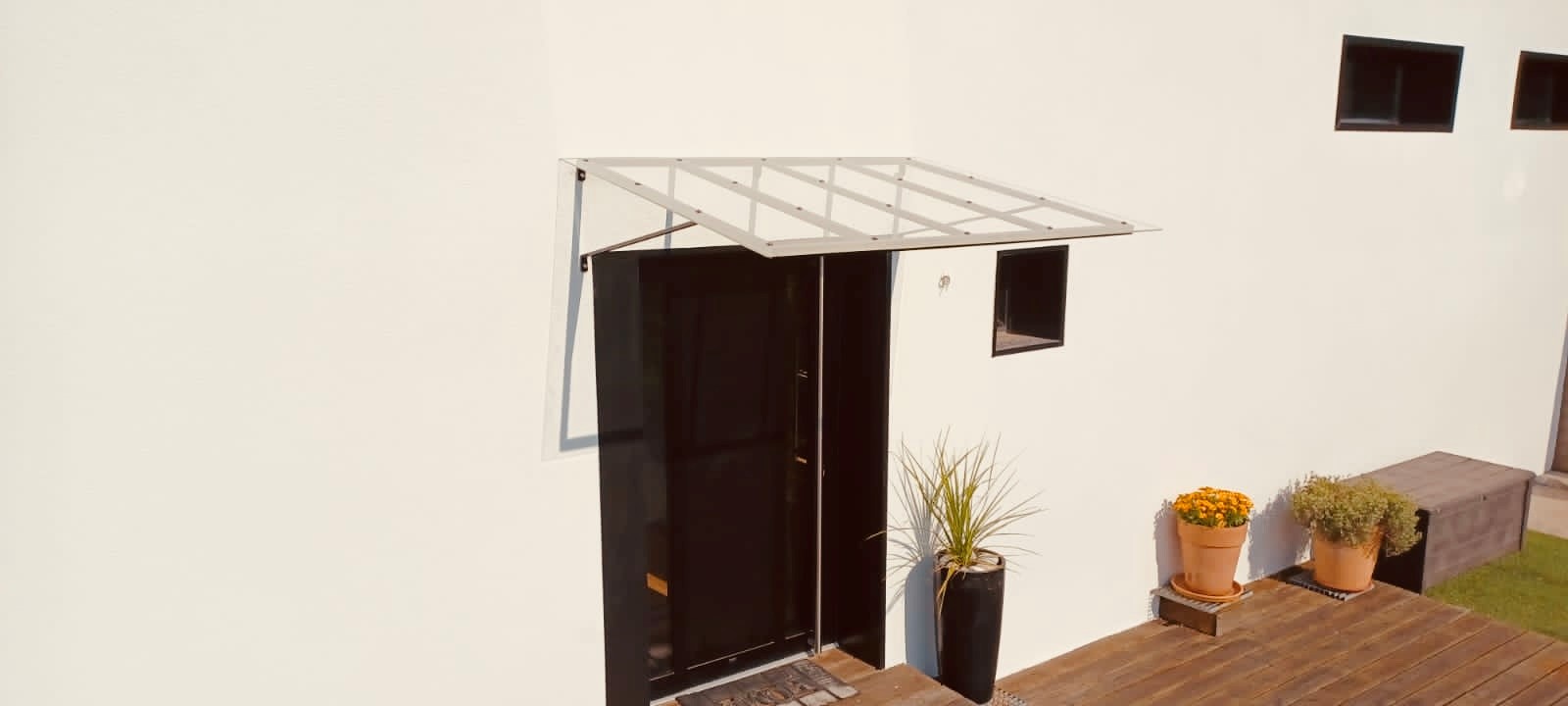 Structure acier et plexiglass transparent épaisseur 4 mm fixé sur chassis avec vis inox étanches.