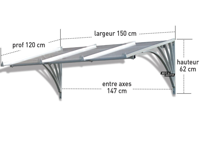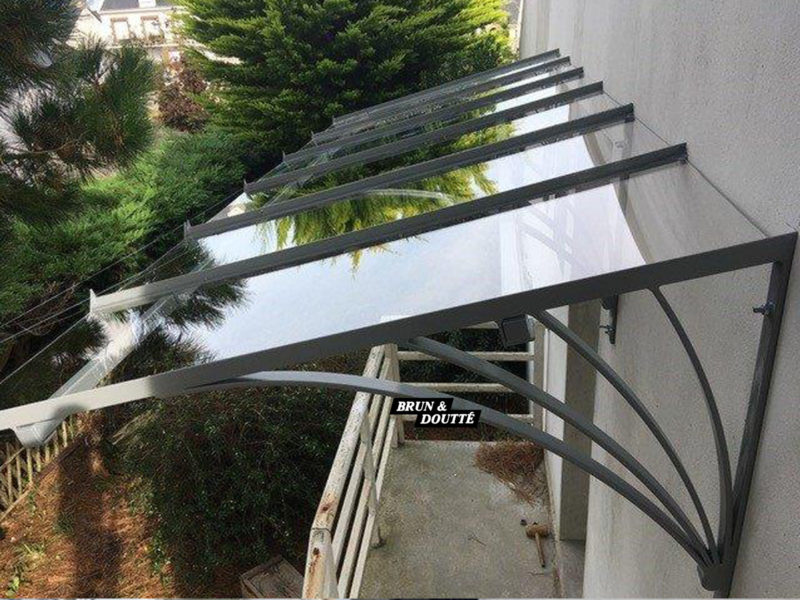 Assemblage simple avec un système de coulisse/emboitage qui vous permet de régler l’entre-axe entre les consoles de votre marquise et l’adapter ainsi à vos mesures ou à vos contraintes de pose (volets, gouttières, moulures…) en recoupant si nécessaire les traverses et le plexi pour les largeurs inférieures à 150 cm. Pour les largeurs supérieures à 150 cm et jusqu’à 200 cm : Pack d’extension (en option sur commande).