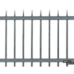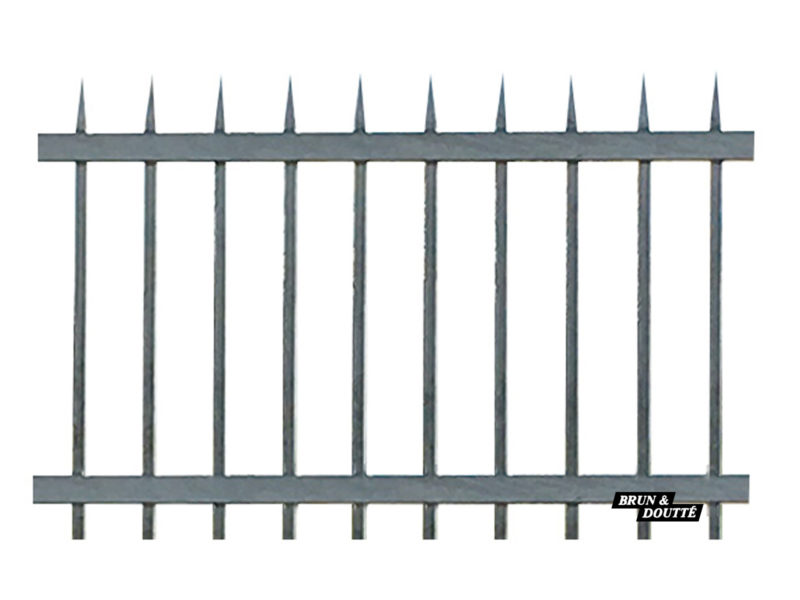 Ossature en tube carré de 40 mm et barreaudage appointé en tube carré de 20 x 20 mm.