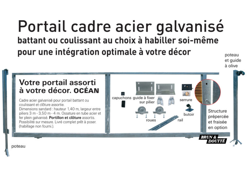 Portail cadre galvanisé Océan et ses accessoires