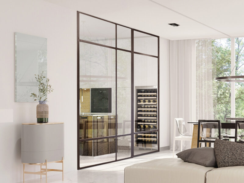 Cloison porte verrière traditionnelle Élégance, modèle Nordik, en acier.