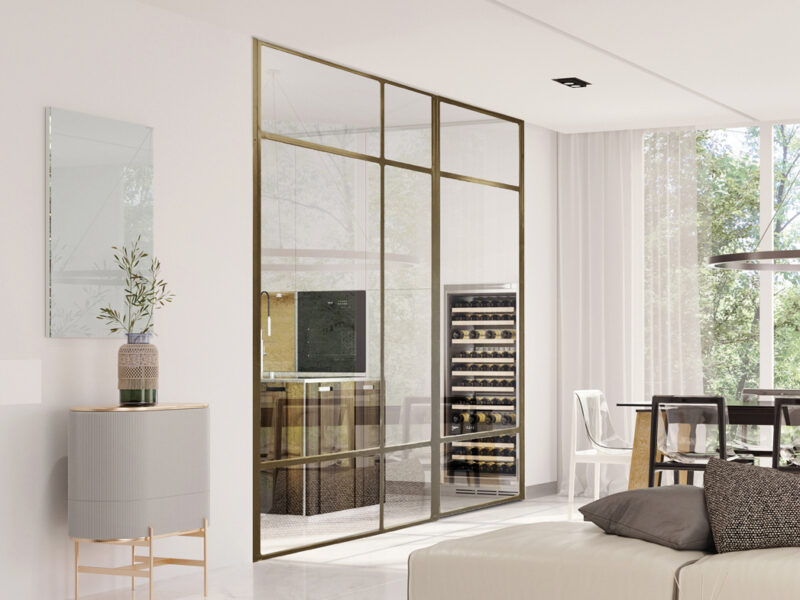 Cloison porte verrière acier. Gamme Elégance. Modèle Nordik, couleur or.
