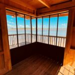 Cloison verrière coulissante d’extérieur. Angle à 90° à soubassement tôlé, 8 vitrages, longueur 300 cm. Sans poteau receveur pour une ouverture totale sans aucun encombrement et sans rail au sol. 2 vantaux 4 vitrages, longueur 150 cm chacun. En finition rouille factory. lightbox
