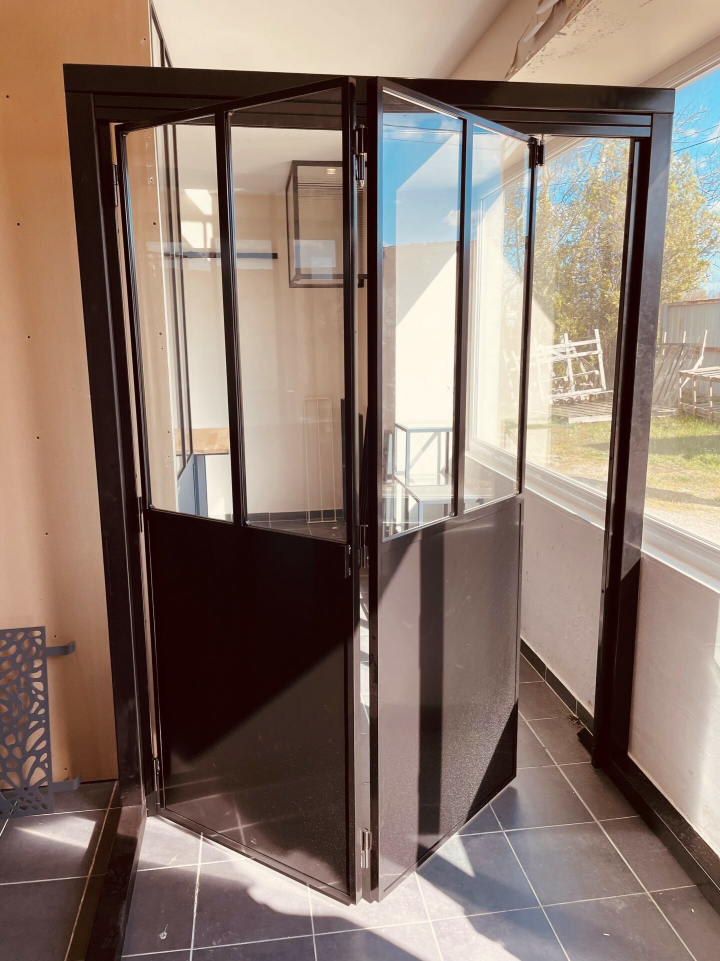 Pour l’extérieur, nous vous proposons des portes verrières papillon d’atelier soudées à la main haute qualité et sur-mesure.