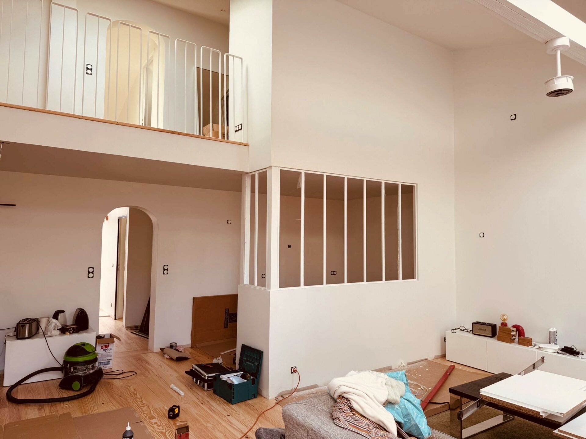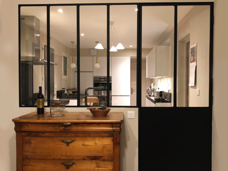 Verrière fenêtre fixe 4 vitrages et porte verrière 2 vitrages à soubassement tolé (vue intérieur)