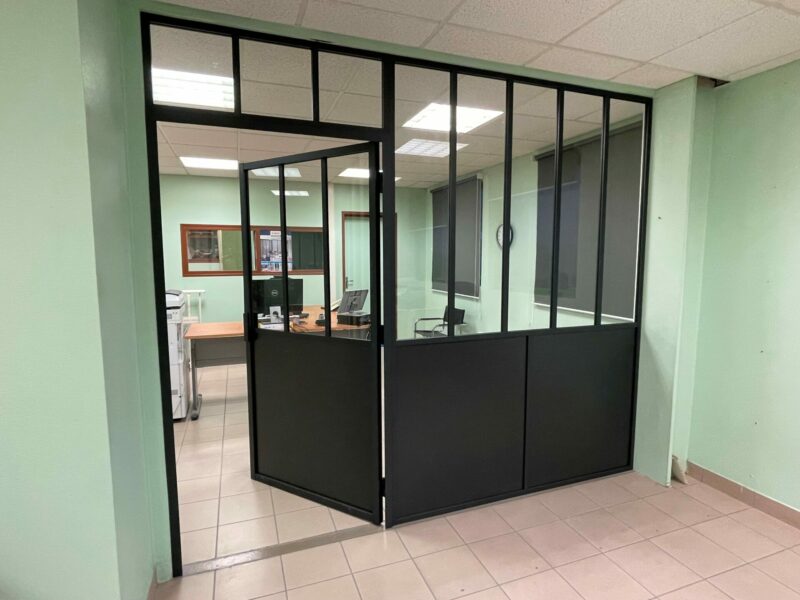 Cloison et porte verrière battante aluminium