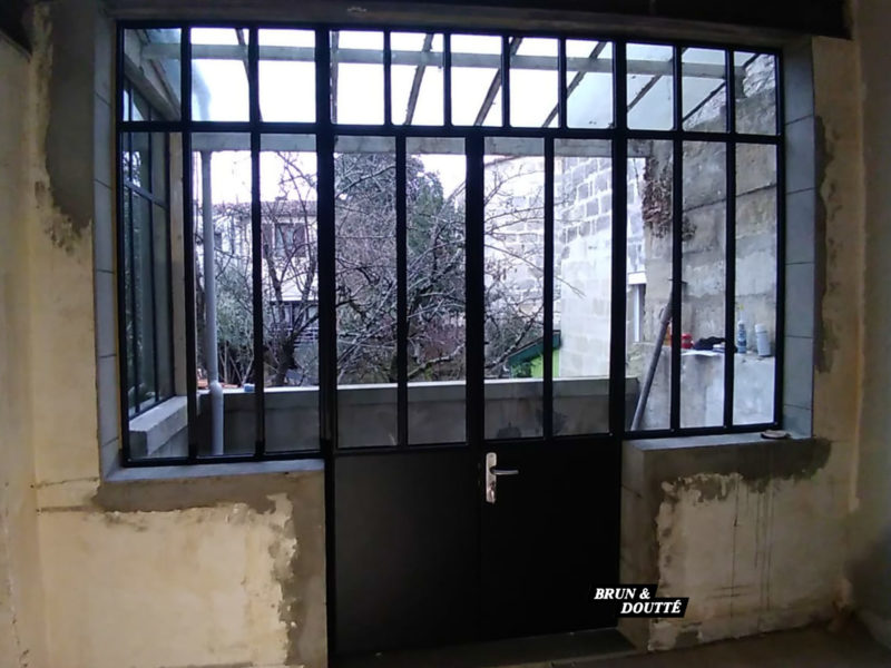 Verrière d'atelier extérieur double porte ral noir 9005 grainé (vue intérieur)
