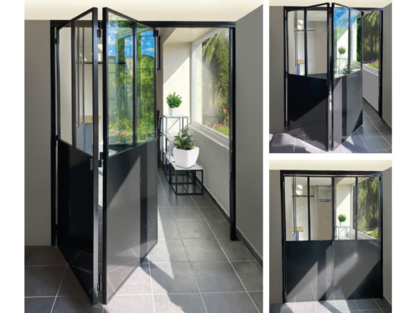 Cloison porte verrière traditionnelle Élégance, modèle Arty, en acier.